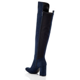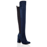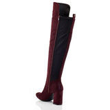 - Faux Suede Over-the-Knee Boot w/Back Stretch Elastic Calf