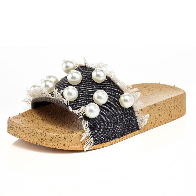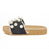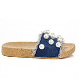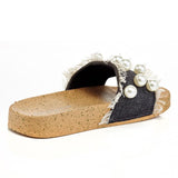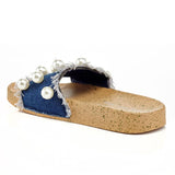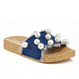 - Pearl Embellished Denim Slide