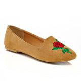 - Faux Suede Flat w/Rose Patch