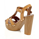 - T-Strap Gold Accessory Platform Heel Shoe
